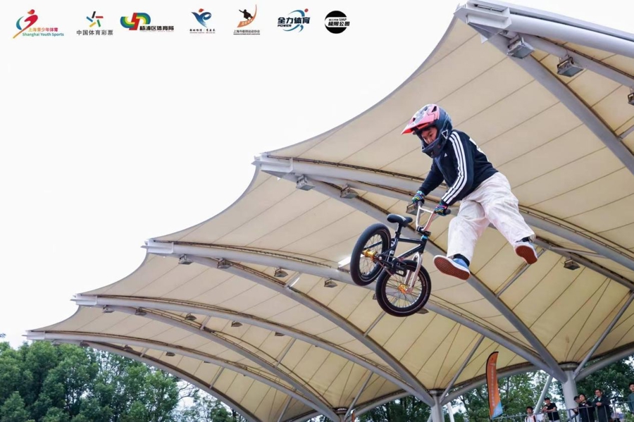 步晴暄今年七年级,接触小轮车仅两年时间便脱颖而出,用实力诠释了热爱的力量。两岁时与小轮车的偶然邂逅,在他心中埋下了热爱的种子。在父亲的全力支持下,他从平地技巧入门,辗转多个场地坚持练习,即便经历手指骨折等伤痛也从未放弃。如今,虽然学业繁忙,但因为热爱,他依然每周挤时间往返于长宁区的学校与宝山区的训练场地,国庆假期更投入5 天专项训练备战。“虽然这次夺冠有一定运气成分,但未来我会继续努力提升技术。” 步晴暄的话语中,满是对这项运动的执着和热爱。