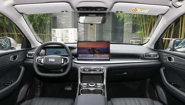 进入车内,双幅式平底多功能方向盘、全液晶仪表盘、悬浮式中控屏和电子怀挡组成了车内的驾驶区域。座椅为5座布局,并采用了大量软质材料包裹,舒适度不错。配置上,搭载千里浩瀚H3辅助驾驶系统,包含11个高清摄像头、3个毫米波雷达、12个超声波雷达等辅助驾驶硬件,芯片算力达到128TOPS。车辆支持HNOA高速领航辅助驾驶,支持语音、拨杆变道,同时提供CNOA城市通勤领航辅助驾驶、AES紧急避让辅助、MAI误加速抑制辅助、HPA记忆泊车辅助等。