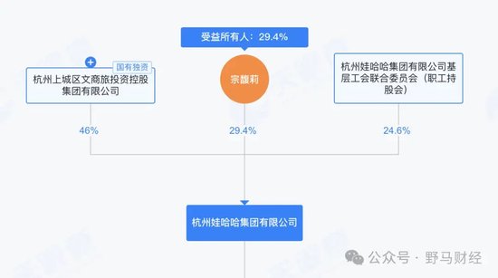 天眼查显示,娃小智食品(杭州)有限公司成立于2025年1月,股权穿透后,宗泽后为该公司实际控制人,持股比例33.21%,并拥有80%表决权。